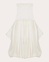 A mixed media masterpiece, the Izzy dress pairs its strapless knit bodice with a crisp taffeta skirt. Draping at the hips and gathering along the hem creates voluminous dimension. Designer color: ivory Pull-on Strapless neckline Knit bodice Draped details (hips) Gathered bubble skirt Taffeta (skirt) Self: 83% recycled viscose, 17% elastic Dry clean only Made in China Size & Fit Model (wearing size S): 5ft 10in tall Fits true to size Please note, below measurements reflect SIMKHAI's size chart, not the actual garment. Size XS (US 0-2): 32-33in bust, 25-26in natural waist, 35.5-36.5in low hip Size S (US 4-6): 34-35.25in bust, 27-28.25in natural waist, 37.5-38.75in low hip Size M (US 8-10): 36.5-38in bust, 29.5-31in natural waist, 40-41.5in low hip Size L (US 12): 39.5in bust, 32.5in natural waist, 43in low hip
