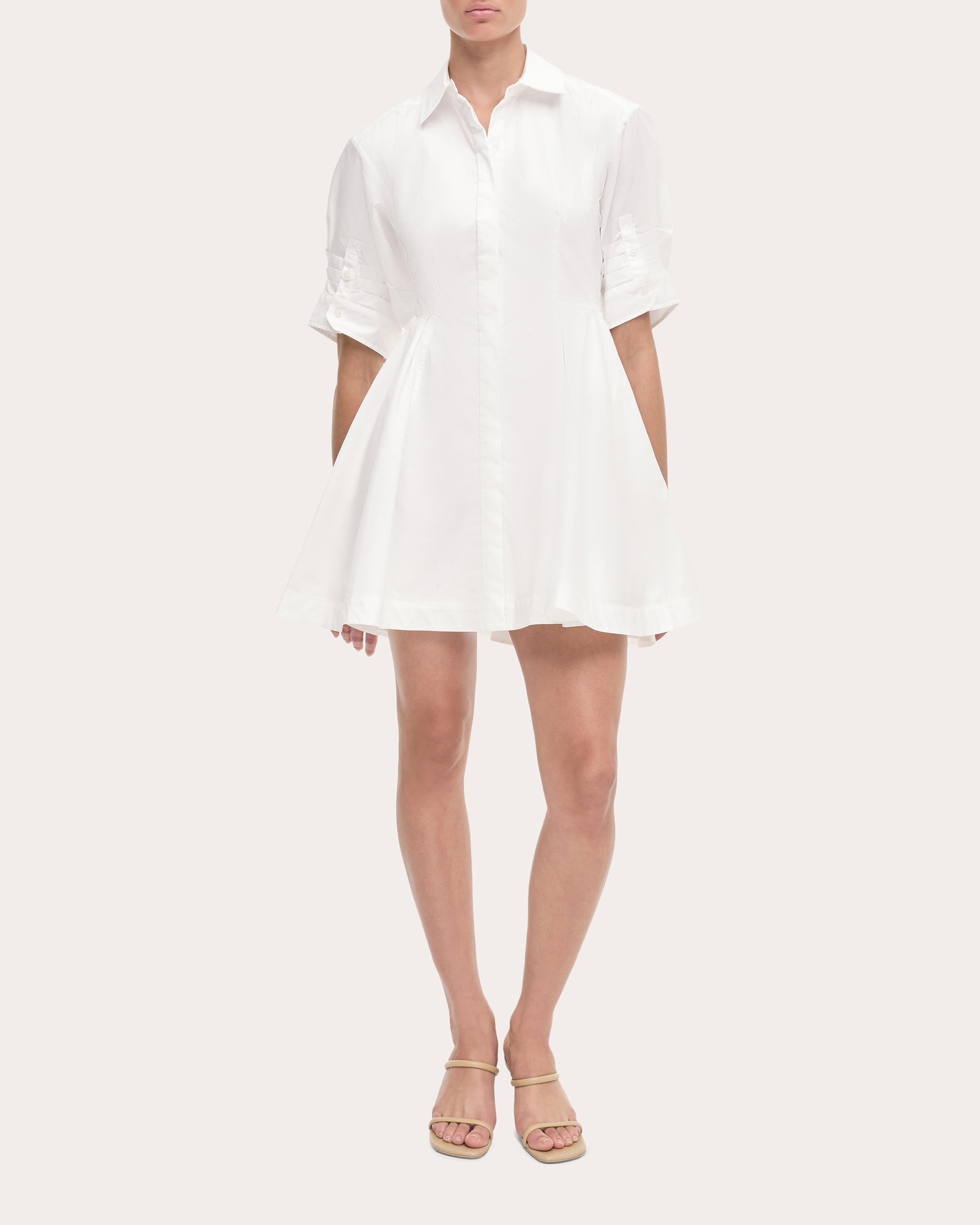 Cut from crisp poplin, the Jazzie dress gives nod to traditional shirting with its collared neckline and front button placket. Fitted at the waist, the skirt's inverted pleats create a gently flared shape. Button closure Collared neckline Darted seams Fitted waistline Inverted skirt pleats Buttoned sleeve cuffs Poplin Self: 63% cotton, 37% polyester Lining: 100% cotton Machine wash cold, dry flat Imported Size & Fit Model (wearing size US 2): 5ft 10in tall Please note, below measurements reflect SIMKHAI's size chart, not the actual garment. Size US 0: 32in bust, 25in natural waist, 35.5in low hip Size US 2: 33in bust, 26in natural waist, 36.5in low hip Size US 4: 34in bust, 27in natural waist, 37.5in low hip Size US 6: 35.25in bust, 28.25in natural waist, 38.75in low hip Size US 8: 36.5in bust, 29.5in natural waist, 40in low hip Size US 10: 38in bust, 31in natural waist, 41.5in low hip Size US 12: 39.5in bust, 32.5in natural waist, 43in low hip