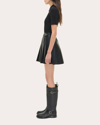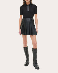 A mixed media masterpiece, the Linnie dress pairs its ribbed knit bodice with a pleated faux-leather skirt. The collared neckline provides preppy contrast to the silhouette's edgy feel. Designer color: black Side-zip closure Collared neckline Half-zip bodice Bucked waist detail Ribbed knit bodice Pleated skirt Faux leather contrast (skirt, trim) Contrast: 100% polyurethane Dry clean only Made in China Size & Fit Model (wearing size S): 5ft 10in tall Fits true to size Please note, below measurements reflect SIMKHAI's size chart, not the actual garment. Size XS (US 0-2): 32-33in bust, 25-26in natural waist, 35.5-36.5in low hip Size S (US 4-6): 34-35.25in bust, 27-28.25in natural waist, 37.5-38.75in low hip Size M (US 8-10): 36.5-38in bust, 29.5-31in natural waist, 40-41.5in low hip Size L (US 12): 39.5in bust, 32.5in natural waist, 43in low hip