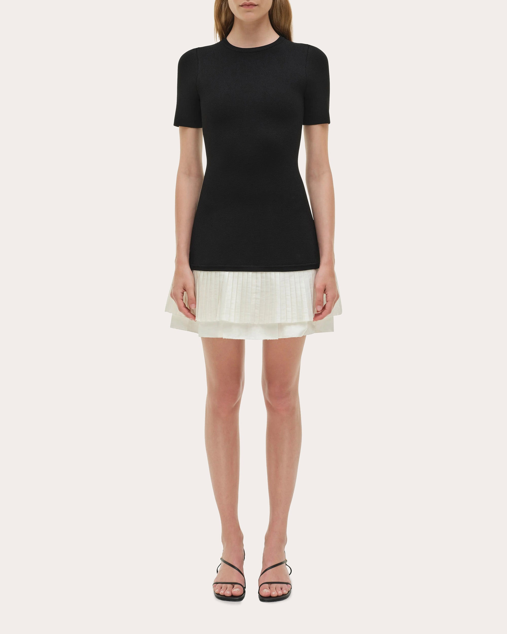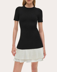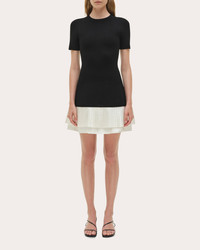 A mixed media masterpiece, the Lorin dress pairs its knit bodice with pleated taffeta skirt layers. The drop-waist design creates an elongated torso effect. Designer color: black multi Pull-on Dropped waist Layered taffeta skirt Pleated skirt top layer Knit Self: 83% viscose, 17% elastane Dry clean only Made in China Size & Fit Model (wearing size S): 5ft 10in tall Fits true to size Please note, below measurements reflect SIMKHAI's size chart, not the actual garment. Size XS (US 0-2): 32-33in bust, 25-26in natural waist, 35.5-36.5in low hip Size S (US 4-6): 34-35.25in bust, 27-28.25in natural waist, 37.5-38.75in low hip Size M (US 8-10): 36.5-38in bust, 29.5-31in natural waist, 40-41.5in low hip Size L (US 12): 39.5in bust, 32.5in natural waist, 43in low hip