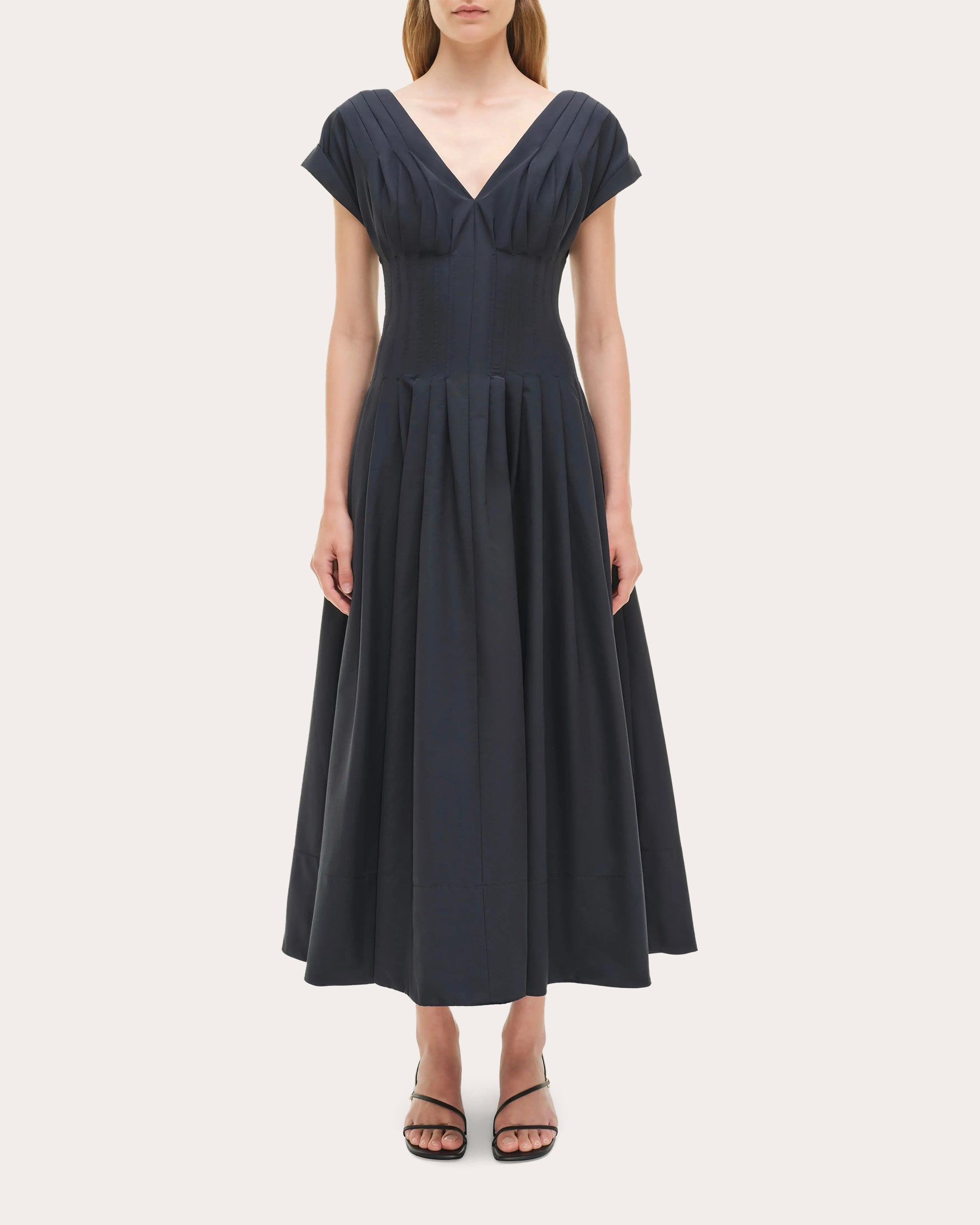 pleated V-neck dress