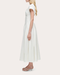 Cut from structural cotton faille, the Nina dress is tailored with pintucked pleats and a seamed, corset-inspired waist. The deep V-neckline and cuffed cap sleeves create architectural shape. Designer color: white Back-zip closure Pintucked pleats Fitted waist Cuffed cap sleeves Side pockets Faille Self: 62% cotton, 38% polyester Lining: 100% polyester Dry clean only Made in China Size & Fit Model (wearing size US 2): 5ft 10in tall Fits true to size Please note, below measurements reflect SIMKHAI's size chart, not the actual garment. Size US 0: 32in bust, 25in natural waist, 35.5in low hip Size US 2: 33in bust, 26in natural waist, 36.5in low hip Size US 4: 34in bust, 27in natural waist, 37.5in low hip Size US 6: 35.25in bust, 28.25in natural waist, 38.75in low hip Size US 8: 36.5in bust, 29.5in natural waist, 40in low hip Size US 10: 38in bust, 31in natural waist, 41.5in low hip Size US 12: 39.5in bust, 32.5in natural waist, 43in low hip