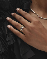 Handcrafted from a combination of sterling silver and 18-karat gold, the Solarium ring features a trio of polished bands linked together by two diamond-embellished connectors. Sterling silver, 18k yellow gold and white diamond Diamond carat: 0.3 ctw Professional jewelry clean Handmade in the USA If you would like to consult with a fine jewelry expert, please email us at jewelryconcierge@olivela.com. Measurements Band widths (each): 1.7mm Need help with sizing? Download our ring size guide or get in touch with a fine jewelry expert by emailing us at jewelryconcierge@olivela.com .