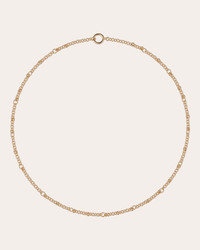 A study in balanced minimalism, the Gravity necklace is forged in 18-karat gold and showcases a handmade roll chain comprised of double and various-sized links. Seamless circular clasp with safety closure 18k yellow gold Polish with soft cloth Handmade in the USA Size & Fit Chain length: 18in Sustainability Metrics: Circular Economy: product is intentionally designed with 50% of actively cycled materials Conflict-Free: 100% of products are recycled or conflict-free and adhere to fair trade and labor Craft & Community: at least 75% of products are fully sourced and manufactured within the specified community or country; 100% of production adheres to a fair wage system Read more about Olivela's sustainability pillars here .