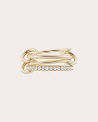 Named for its mystically transformative astrological counterpart, the Pisces ring features four 18-karat gold bands—three solid and one decorated with shimmering white diamonds. True to the sign's fluid nature, orbiting annulet connectors create a linked design that can be worn stacked on one finger or spread across multiple. 18k yellow gold and white diamond Diamond carat: 0.7 ctw Diamond color: G Diamond clarity: VS1 Polish with soft cloth Handmade in Los Angeles, USA Measurements Band 1 (top) width: 1.2mm Band 2 width: 1.7mm Band 3 width: 1.2mm Band 4 (bottom) width: 2.3mm Sustainability Metrics: Circular Economy: product is intentionally designed with 50% of actively cycled materials Conflict-Free: 100% of products are recycled or conflict-free and adhere to fair trade and labor Craft & Community: at least 75% of products are fully sourced and manufactured within the specified community or country; 100% of production adheres to a fair wage system Read more about Olivela's sustainability pillars here .