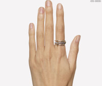 Dynamic in nature, the Tigris ring is formed from a trio of sterling silver bands—two solid and one decorated with an ombre-hued array of shimmering blue sapphires. Orbiting 18k gold annulets create a linked design that can be worn stacked on one finger or spread across multiple. Sterling silver, 18k yellow gold and blue sapphire Carat: 0.7 ctw Polish with soft cloth Handmade in the USA If you would like to consult with a fine jewelry expert, please email us at jewelryconcierge@olivela.com. Measurements Top band width: 1.7mm Middle band width: 2.3mm Bottom band width: 1.7mm Need help with sizing? Download our ring size guide or get in touch with a fine jewelry expert by emailing us at jewelryconcierge@olivela.com .