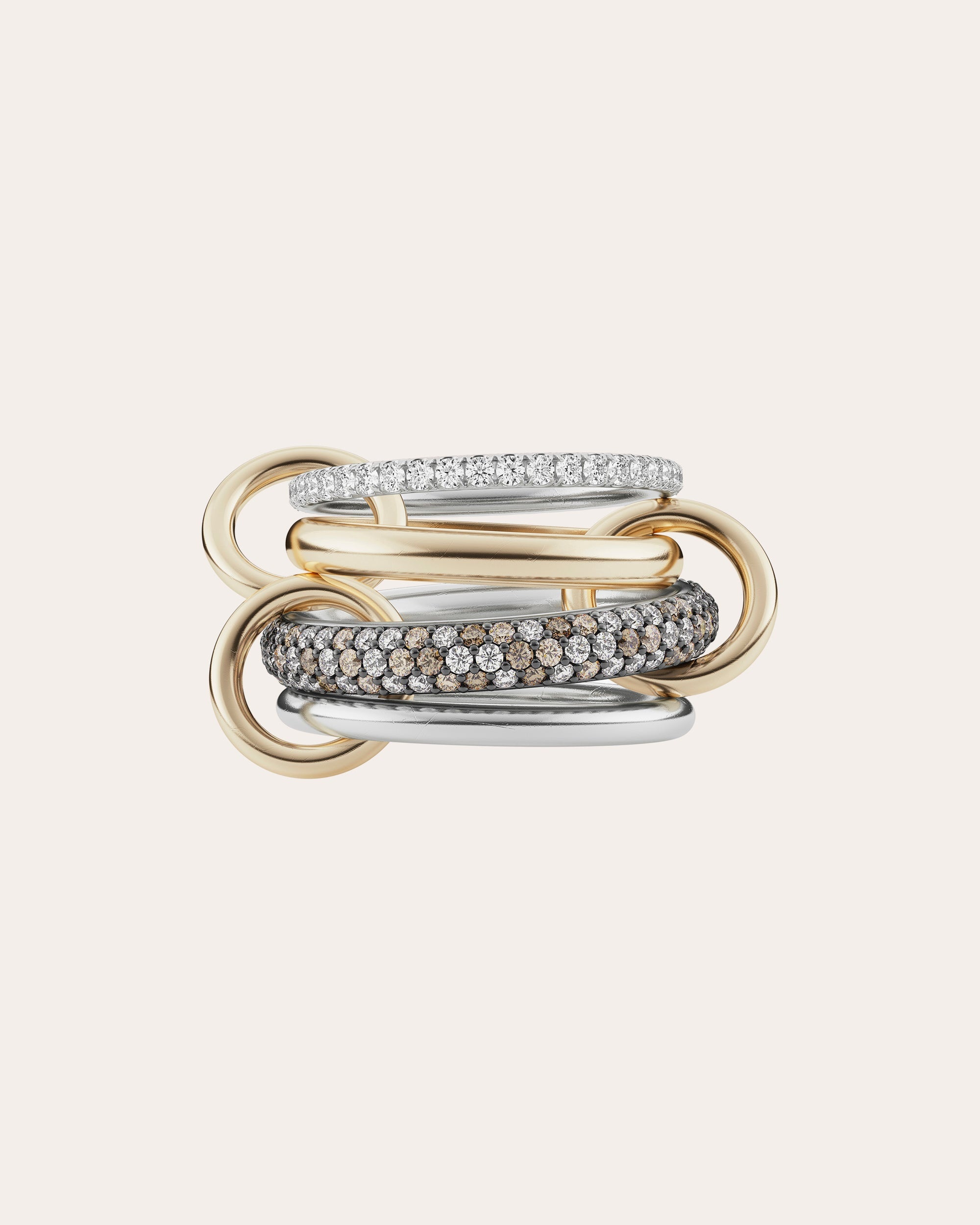 Vega 18K Gold Sterling Silver and Mixed-Diamond Linked Rings