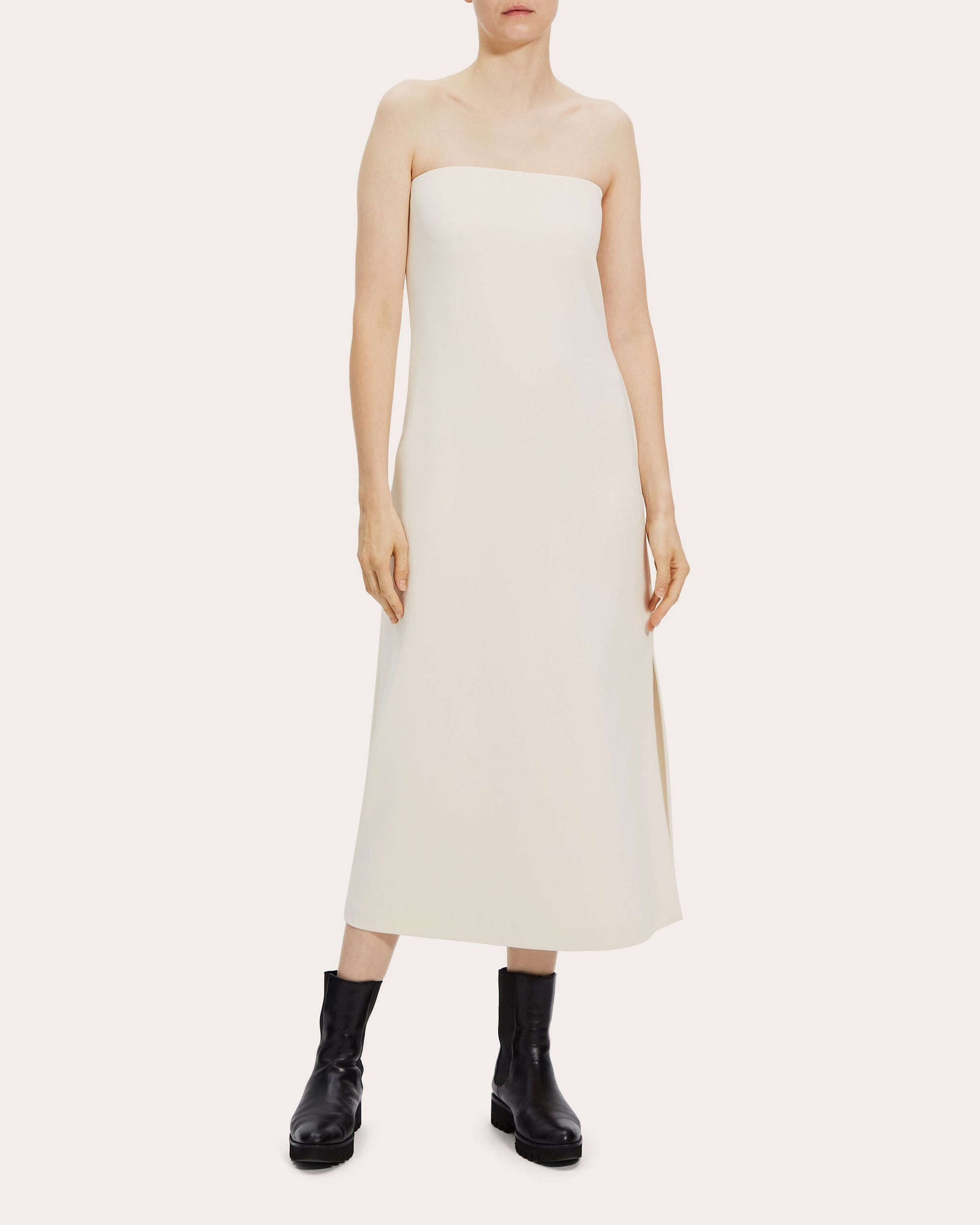 Made for the minimalist, this strapless midi dress is crafted from Theory's admiral crepe fabric and features a slit at the side seam for added allure. Zip closure Side-slit hem Fully lined Admiral crepe fabric 70% triacetate, 30% polyester Dry clean only Made in China Size & Fit Size US 00: 31in bust, 24.5in waist, 34.25in hips Size US 0: 32in bust, 25.5in waist, 35.25in hips Size US 2: 33in bust, 26.5in waist, 36.25in hips Size US 4: 34in bust, 27.5in waist, 37.25in hips Size US 6: 35in bust, 28.5in waist, 38.25in hips Size US 8: 36in bust, 29.5in waist, 39.25in hips Size US 10: 37.5in bust, 31in waist, 40.75in hips Please note, above measurements reflect Theory's size chart, not the actual garment. Sustainability Metrics: Natural Resources: at least 50% of materials used are produced with a reduced environmental impact Read more about Olivela's sustainability pillars here .