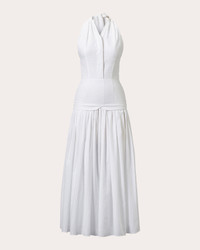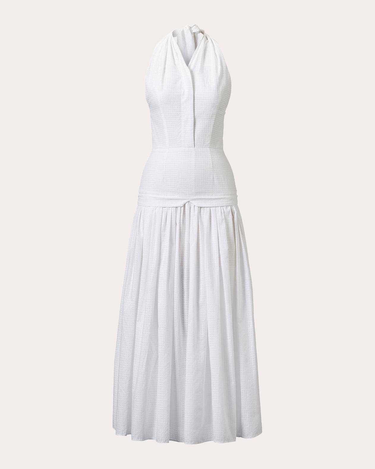 Modern and minimal, the Quinn dress adds structured shape to its halter silhouette with fitted seams throughout the bodice. Strategic gathering along the dropped waistline creates a pleated skirt effect. Zip closure Tied halter neckline Fitted bodice seams Gathered drop waist Woven check texture Self: 100% cotton Lining: 100% cotton Dry clean Fabric sourced from Italy Made in Portugal Size & Fit Garment measurements (size FR 36 / US 4): 39.76in long from high point of shoulder to hem, 29.92in bust, 25.98in waist, 32.68in hips Size FR 34 / US 2: 31.3in bust, 24.6in waist, 30in high hip, 33in low hip Size FR 36 / US 4: 32.3in bust, 25.5in waist, 31in high hip, 34in low hip Size FR 38 / US 6: 34.2in bust, 27.2in waist, 32.9in high hip, 36in low hip Size FR 40 / US 8: 36.2in bust, 29.2in waist, 34.8in high hip, 38in low hip Size FR 42 / US 10: 38.2in bust, 31.2in waist, 36.8in high hip, 40in low hip Please note, above measurements reflect TOVE's size chart, not the actual garment.