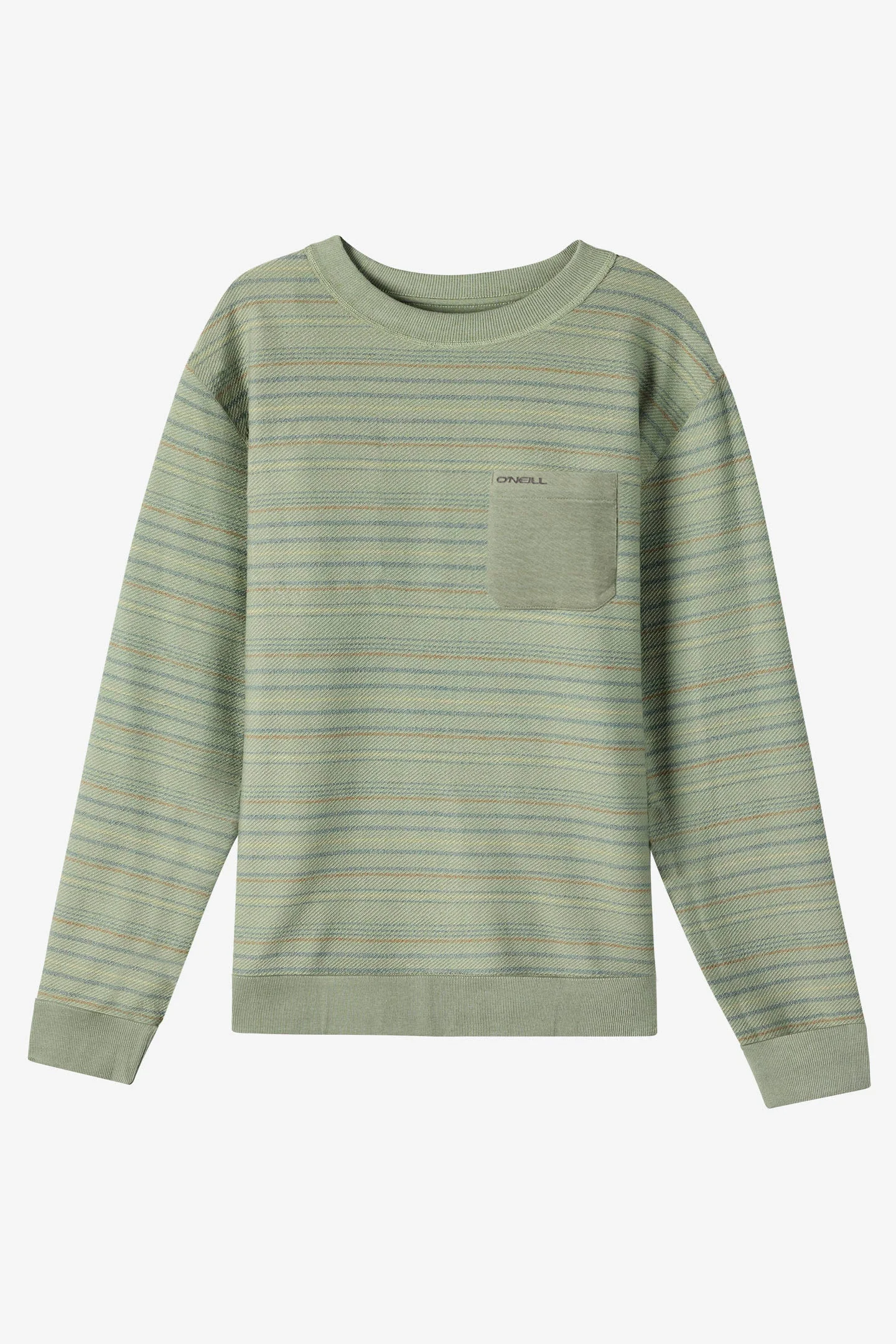 Easy to wear pullover crewneck sweatshirt that features a front colorblock pocket detail and soft french terry fabric feel. - Men's french terry crewneck sweatshirt - Standard Fit - Weight 280 GSM - Cotton poly french terry body - Chest pocket with stripes - Ribbed Collar, hem and cuffs - Side seam label - 60% Cotton, 40% Polyester SKU: FA5110101|SAG