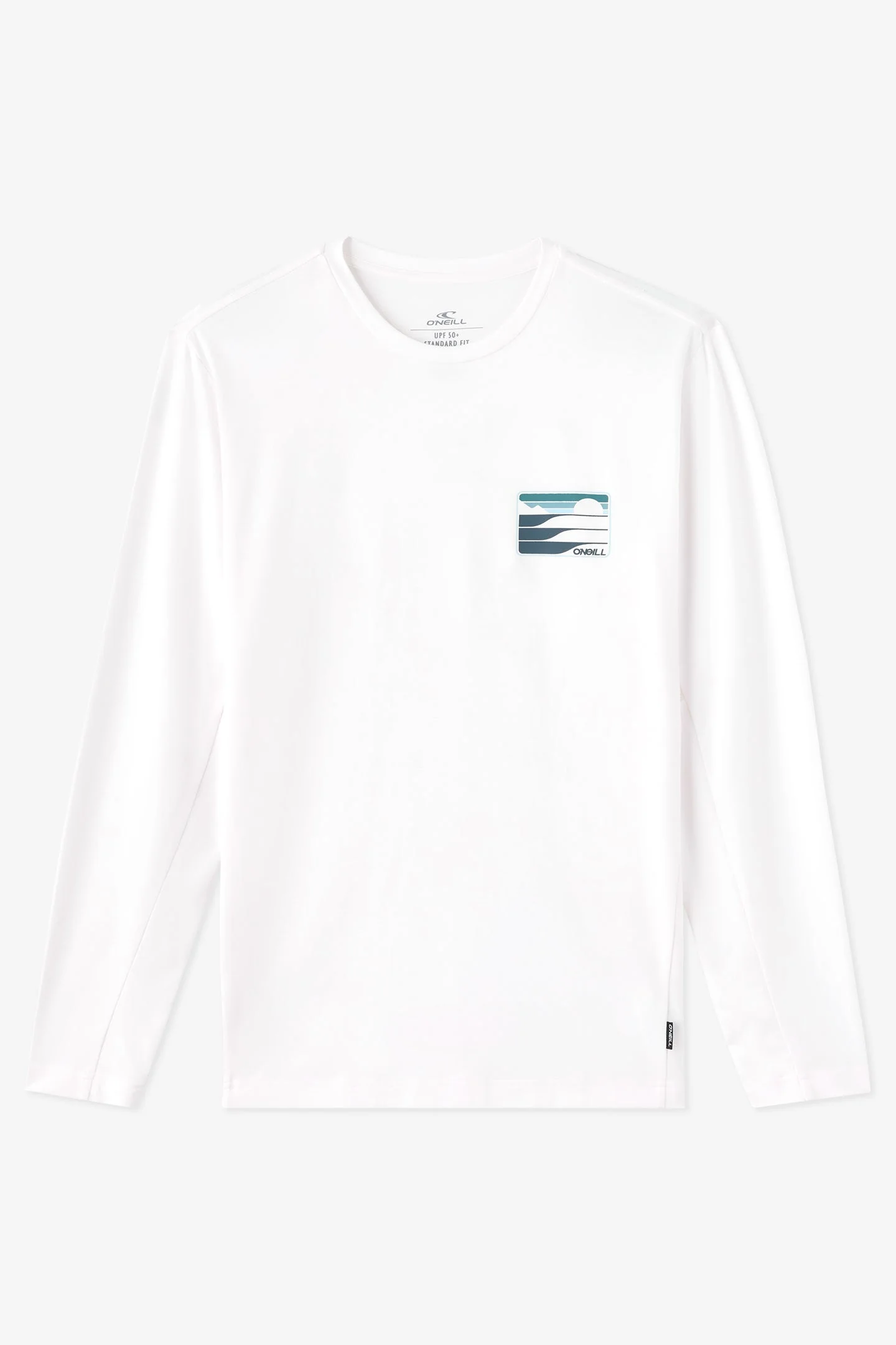 Light and comfortable active tee that's made with stretch fabrication, moisture wicking fabric and UPF 50+ sun protection. - Men' Standard Fit LS Crew Neck - 45% Recycled Polyester/45% Polyester/10% - 29'' HPS Length - 50+ UPF - Screenprint on Left Chest SKU: SP2611890|WHT