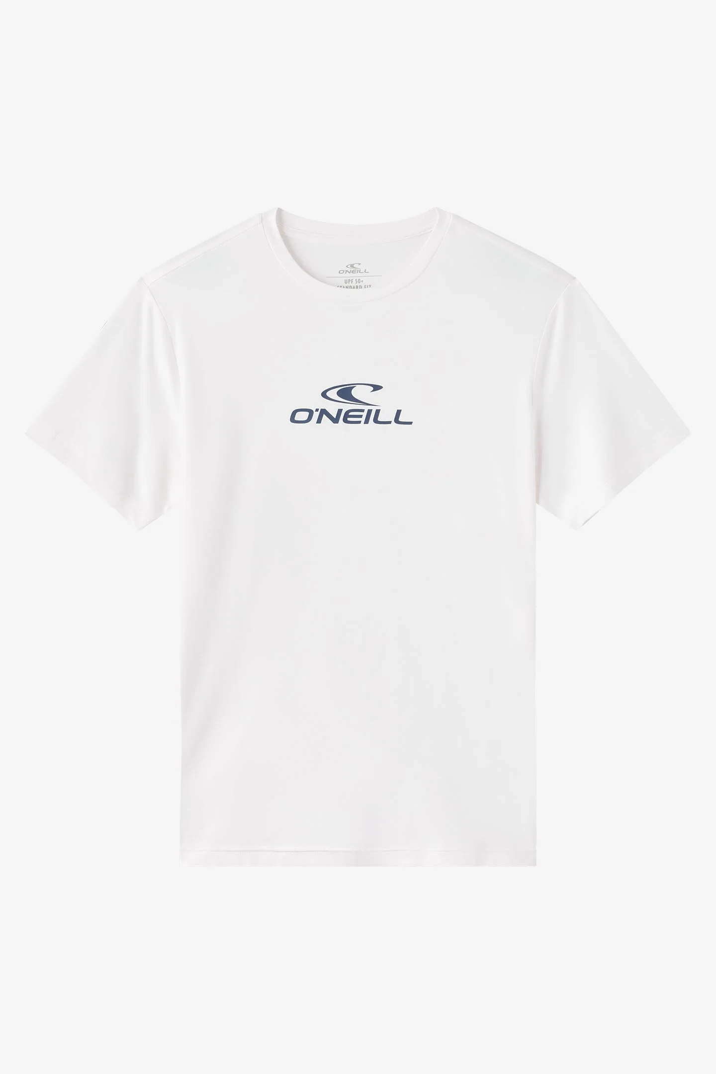 Look good and stay protected. This classically styled short sleeved shirt features our sun protection fabric to keep you cool all day long. - Men's Standard Fit SS Crew Neck - 45% Recycled Polyester/45% Recycled Polyester/10% Elastane - 29'' HPS Length - 50+ UPF - Screenprint on Center Chest SKU: SP2611891|WHT