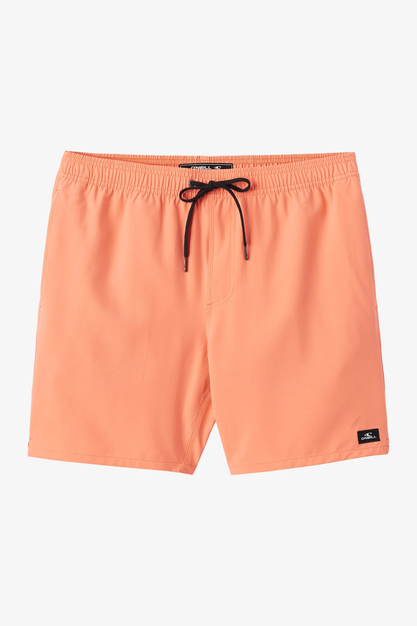 Ready for sunshine and long days at the beach or by the pool. Our trunks feature an elastic waist that's fully adjustable so you can get the perfect fit every time. Side pockets offer extra storage while the shorter outseam creates a vintage-inspired look. - Men's swim trunk - 17" Outseam/7" Inseam - well above the knee fit - 4-Way stretch - O'Neill Hyperdry DWR - Elastic waist with tunnel drawcord - Hand pockets, back pocket - Anti-rash hyperthread - 50% Recycled Polyester, 40% Polyester, 10% Elastane SKU: SP5106026|PEC