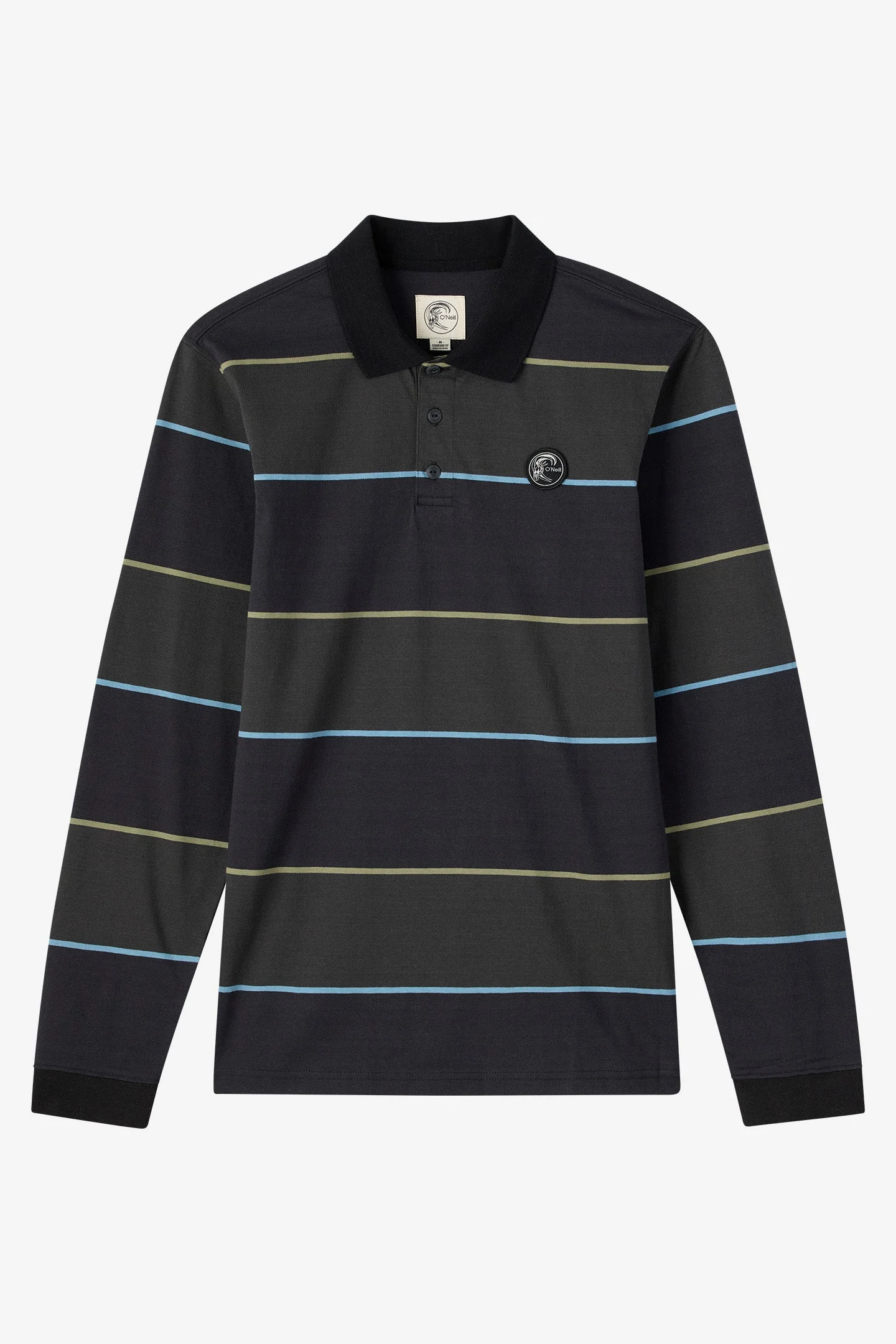 Super classic long sleeve knit polo that has a striped print and soft fabric feel. - Men's long sleeve knit polo shirt - Standard fit - Weight 220 GSM - Rib collar & cuff - Chest patch - Button placket - 100% Cotton Yarn Dye Jersey SKU: FA5103200|BLK