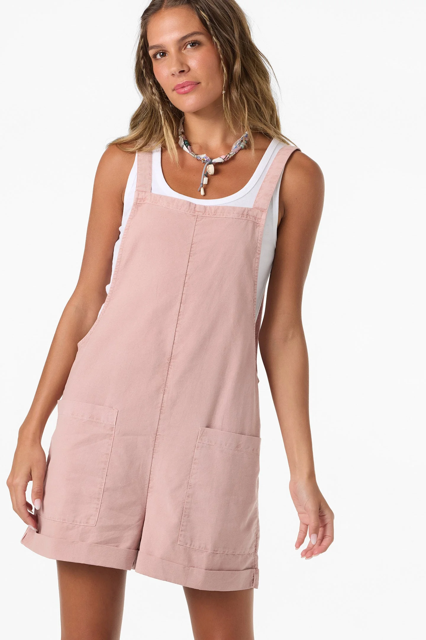Easy and stylish, this overall romper features a light cotton-blend design, front patch pockets, and adjustable straps. - Woven Romper - 84% Cotton, 16% Linen, 150–160 GSM - 2½'' Inseam - Patch Pockets - Front and Back Yoke Seam Detail - Adjustable Straps SKU: SP2641616|ORC