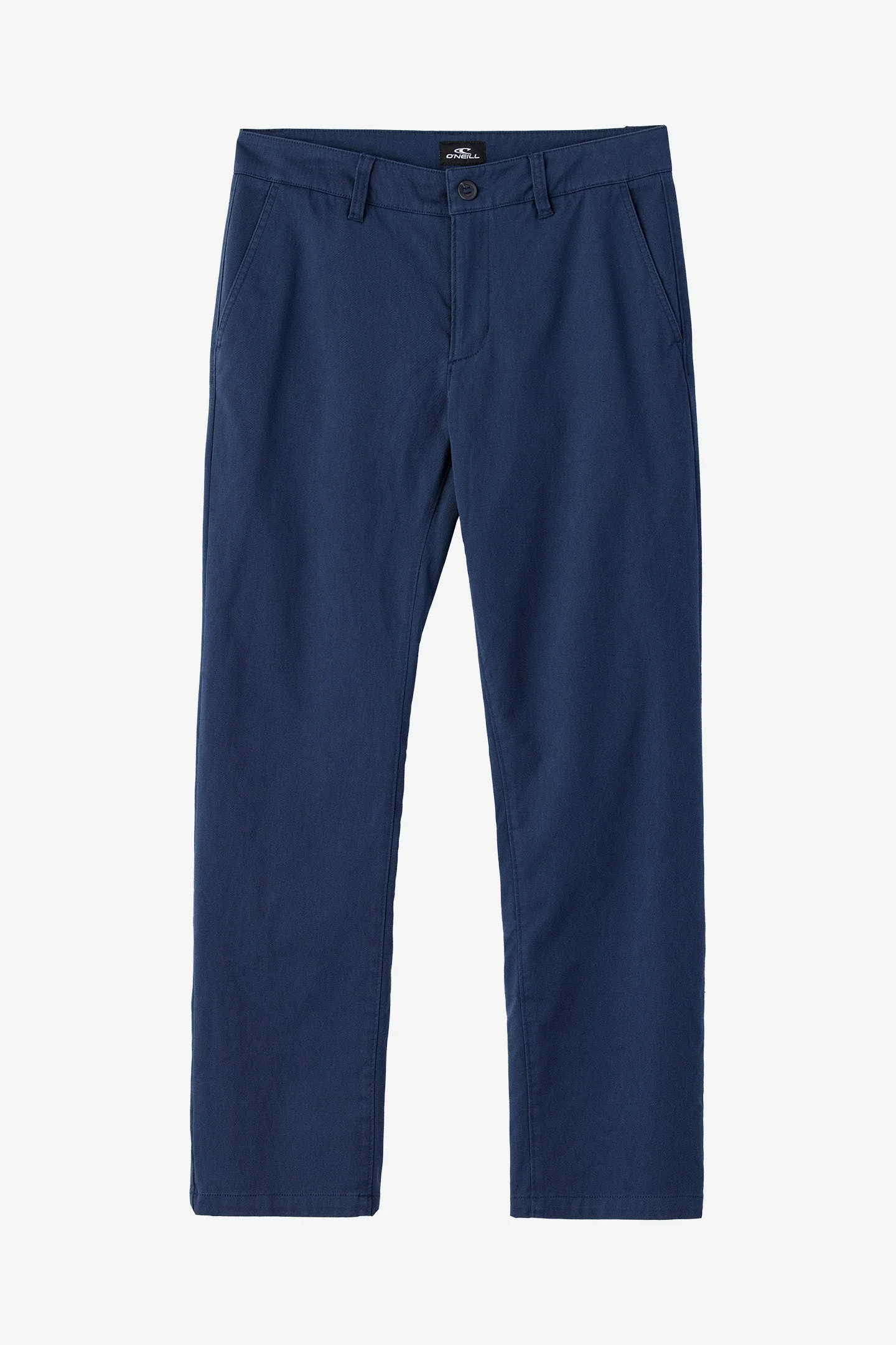 The perfect modern chino pant, built for everyday wear. It features a standard fit straight leg design, premium stretch fabrication and a light but durable feel. - O'Neill Men's stretch chino pant - 16" Leg opening - 32" Inseam - Regular fit, straight leg - Back welt pockets with button closure - Front slash pockets - Buckle button front closure - Chambray binding at interior waistband - Back patch detail - 59% Polyester, 39% Cotton, 2% Elastane SKU: FA4109100|NVY