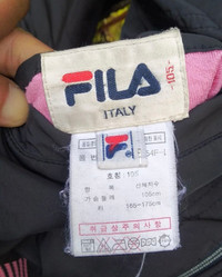 MEASUREMENT FILA JACKET zipper Reverseble fila italy , biella italia size 105 made in korea color pink and black ...> SHOUDER 18" ...> ARMPIT 21.5" ...> SLEEVE 24" ...> LENGTH 25" 👉CONDITION REFER PICTURES 9/10 ➡STAIN: none ➡HOLE: none ➡FADED: none 👉PLEASE REFER PICTURES FOR MORE DETAIL --------------@Δ@----------- 👉ALL THE MEASUREMENT TAKEN WITH THE GARMENT FLAT ON THE FLOOR. ➡PLEASE CHECK THE MEASUREMENT BEFORE BUYING ➡DON'T WORRY ABOUT CUSTOMS TAX OR FEES.I'M DECLARE VALUE OF ITEM LOWER THAN ORIGINAL PRICE. ➡PLEASE DONT EXPECT THE ITEM TO BE LIKE NEW ITEM.REMEMBER..!! THIS USED ITEM ➡SHIPPING USED DHL EXPRESS ARRIVED 1-7 WORKING DAYS AFTER SHIP..(for item above $150) ➡PLEASE DROP YOUR PHONE NUMBER AFTER PURCHASE FOR THE DELIVERY PROCESS ➡NO RETURN NO REFUND THANKS 😘THANK A LOT FOR WATCHING MY ITEM.PLEASE VISIT MY SHOP FOR OTHER LISTING ITEM😘♥♥608g