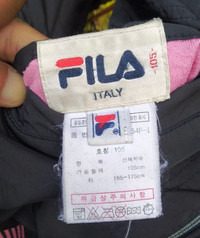 MEASUREMENT FILA JACKET zipper Reverseble fila italy , biella italia size 105 made in korea color pink and black ...> SHOUDER 18" ...> ARMPIT 21.5" ...> SLEEVE 24" ...> LENGTH 25" 👉CONDITION REFER PICTURES 9/10 ➡STAIN: none ➡HOLE: none ➡FADED: none 👉PLEASE REFER PICTURES FOR MORE DETAIL --------------@Δ@----------- 👉ALL THE MEASUREMENT TAKEN WITH THE GARMENT FLAT ON THE FLOOR. ➡PLEASE CHECK THE MEASUREMENT BEFORE BUYING ➡DON'T WORRY ABOUT CUSTOMS TAX OR FEES.I'M DECLARE VALUE OF ITEM LOWER THAN ORIGINAL PRICE. ➡PLEASE DONT EXPECT THE ITEM TO BE LIKE NEW ITEM.REMEMBER..!! THIS USED ITEM ➡SHIPPING USED DHL EXPRESS ARRIVED 1-7 WORKING DAYS AFTER SHIP..(for item above $150) ➡PLEASE DROP YOUR PHONE NUMBER AFTER PURCHASE FOR THE DELIVERY PROCESS ➡NO RETURN NO REFUND THANKS 😘THANK A LOT FOR WATCHING MY ITEM.PLEASE VISIT MY SHOP FOR OTHER LISTING ITEM😘♥♥® 608g