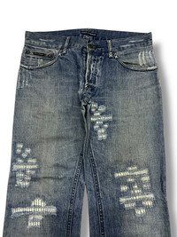 Dolce&Gabbana Vintage Distressed Denim Jeans CODE : A2 Size : Tage 35 Material : Refer photo Condition : Good Vintage Condition MEASUREMENT IN INCHES - WAIST : 17.5 - OUTSEAM : 39.5 - INSEAM: 30 - THIGH : 11 - KNEE : 8.8 - LEG OPENING : 8 - FRONT RISE : 11 DEAR VALUE CUSTOMER : * Please dont expect this item 100% like new unless i have mention it. REFUNDS : * No Exchange, No Refund, No Return And No Trades. All Sales Are Final. ATTENTION: * Please pay close attention to measurements provided. PAYMENT AND SHIPPING : * This item will be ship along with tracking number after received a complete payment (2-3 days after complete payment ) Thank you very much for your visit my store !!OFFER ME YOUR BEST PRICE NOW !! #hype #distresseddenim #japanesbrand #ifsixwasnine #tornadomart #kapital #hystericglamour #rickowens #midas #chromehearts #14addiction #maisonmargiela #balenciaga #undercover #juntakahashi #junyawatanabe #nike #levis #karakuritamashi #DolceandGabbana