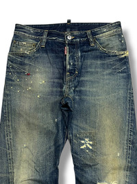 Dsquared2 Italian Designer Glitter Painted Spiral Distressed Denim CODE : A2 Size : Tage 34 Material : Refer photo Condition : Good Vintage Condition MEASUREMENT IN INCHES - WAIST : 17 - OUTSEAM : 41 - INSEAM: 29.5 - THIGH : 11 - KNEE : 8.2 - LEG OPENING : 7.5 - FRONT RISE : 12 DEAR VALUE CUSTOMER : * Please dont expect this item 100% like new unless i have mention it. REFUNDS : * No Exchange, No Refund, No Return And No Trades. All Sales Are Final. ATTENTION: * Please pay close attention to measurements provided. PAYMENT AND SHIPPING : * This item will be ship along with tracking number after received a complete payment (2-3 days after complete payment ) Thank you very much for your visit my store !!OFFER ME YOUR BEST PRICE NOW !! #hype #distresseddenim #japanesbrand #ifsixwasnine #tornadomart #kapital #hystericglamour #rickowens #midas #chromehearts #14addiction #maisonmargiela #balenciaga #undercover #juntakahashi #junyawatanabe #evisu #nike #levis #dsquared2