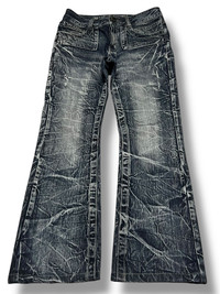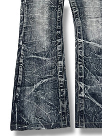 Blow By Blue Faded Thunder Washed Flared Jeans CODE A1 Size : 30 Material: refer to the photo Condition: good vintage condition MEASUREMENT IN INCHES - WAIST : 15 - OUTSEAM : 38.7 - INSEAM: 27.5 - LEG OPENING : 9 - FRONT RISE : 11 - THIGH : 10.5 - KNEE : 7.7 DEAR VALUE CUSTOMER : * Please dont expect this item 100% like new unless i have mention it. REFUNDS : * No Exchange, No Refund, No Return And No Trades. All Sales Are Final. ATTENTION: * Please pay close attention to measurements provided. Thank you very much for your visit my store !!OFFER ME YOUR BEST PRICE NOW !! #hype #distresseddenim #japanesbrand #ifsixwasnine #tornadomart #kapital #hystericglamour #rickowens #midas #chromehearts #14addiction #maisonmargiela #balenciaga #undercover #juntakahashi #junyawatanabe #evisu #nike #levis #edwin