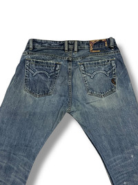 Cult Of Individuality Distressed Selvedge Denim CODE : A2 Size : 34 Style : Baggy Material : Refer photo Condition : Good Vintage Condition MEASUREMENT IN INCHES - WAIST : 17 - OUTSEAM : 37 - INSEAM: 27 - THIGH : 11.5 - KNEE : 9 - LEG OPENING : 9 - FRONT RISE : 10.5 DEAR VALUE CUSTOMER : * Please dont expect this item 100% like new unless i have mention it. REFUNDS : * No Exchange, No Refund, No Return And No Trades. All Sales Are Final. ATTENTION: * Please pay close attention to measurements provided. PAYMENT AND SHIPPING : * This item will be ship along with tracking number after received a complete payment (2-3 days after complete payment ) Thank you very much for your visit my store !!OFFER ME YOUR BEST PRICE NOW !! #japanesbrand #distresseddenim #ifsixwasnine #tornadomart #kapital #hystericglamour #rickowens #midas #chromehearts #14addiction #maisonmargiela #balenciaga #undercover #juntakahashi #junyawatanabe #evisu #nike #levis #karakuritamashi #helmutlang