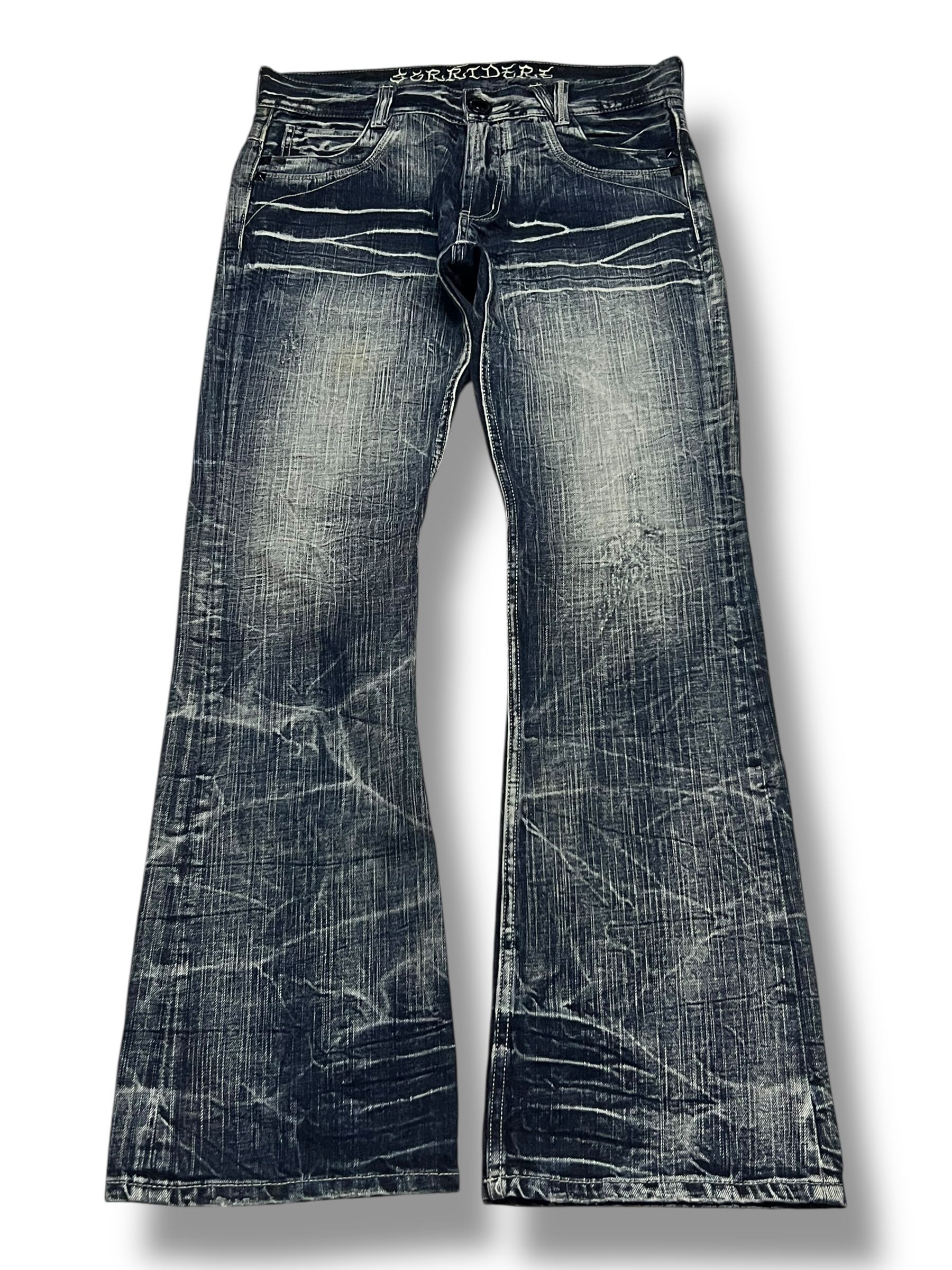 Sorridere Whisker Washed Flared Jeans CODE : A2 Size : 32 Material : Refer photo Condition : good vintage condition MEASUREMENT IN INCHES - WAIST : 16 - OUTSEAM : 41 - INSEAM: 31 - LEG OPENING : 9.2 - FRONT RISE : 10.5 - THIGH : 10.5 - KNEE : 8 - DEAR VALUE CUSTOMER : * Please dont expect this item 100% like new unless i have mention it. REFUNDS : * No Exchange, No Refund, No Return And No Trades. All Sales Are Final. ATTENTION: * Please pay close attention to measurements provided. Thank you very much for your visit my store !!OFFER ME YOUR BEST PRICE NOW !! #hype #distresseddenim #japanesbrand #ifsixwasnine #tornadomart #kapital #hystericglamour #rickowens #midas #chromehearts #14addiction #maisonmargiela #balenciaga #undercover #juntakahashi #junyawatanabe #evisu #nike #levis #edwin