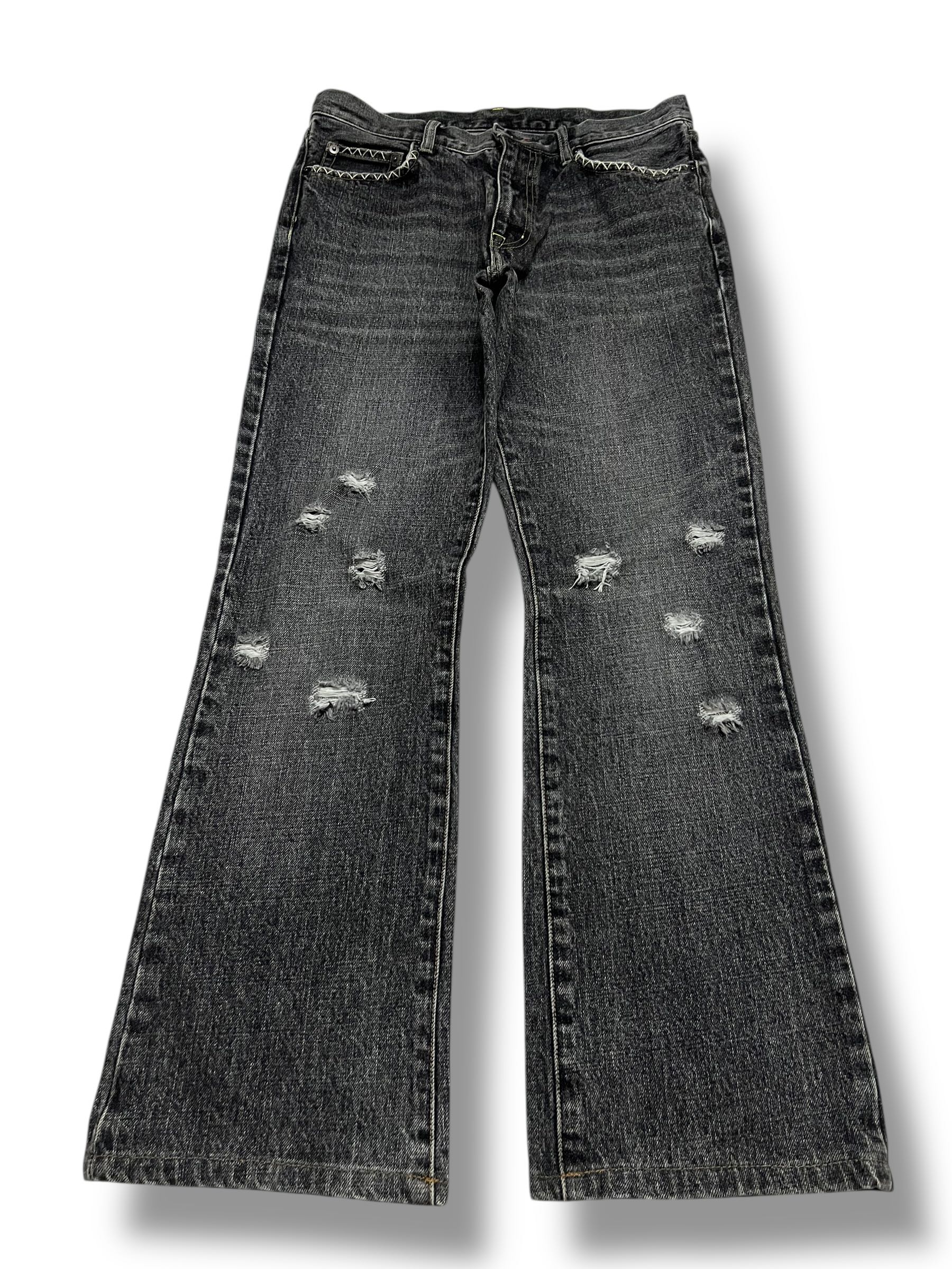 Uniqlo Black Stone Wash Whiskered Distressed Flare Jeans CODE : A2 Size : 30 Material : Refer photo Condition : good vintage condition MEASUREMENT IN INCHES - WAIST : 15 - OUTSEAM : 38 - INSEAM: 27 - THIGH : 10.5 - KNEE : 7.8 - LEG OPENING : 8.5 - FRONT RISE : 11 DEAR VALUE CUSTOMER : * Please dont expect this item 100% like new unless i have mention it. REFUNDS : * No Exchange, No Refund, No Return And No Trades. All Sales Are Final. ATTENTION: * Please pay close attention to measurements provided. PAYMENT AND SHIPPING : * This item will be ship along with tracking number after received a complete payment (2-3 days after complete payment ) Thank you very much for your visit my store !!OFFER ME YOUR BEST PRICE NOW !! #hype #distresseddenim #japanesbrand #ifsixwasnine #tornadomart #kapital #hystericglamour #rickowens #midas #chromehearts #14addiction #maisonmargiela #balenciaga #undercover #juntakahashi #junyawatanabe #evisu #nike #levis #edwin