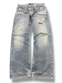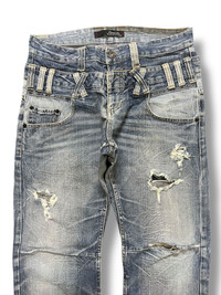 Vintage Japan Dominate Double Waist Distressed Denim CODE : A2 Size : 33 Material : Refer photo Condition : Good Vintage Condition MEASUREMENT IN INCHES - WAIST : 16.5 - OUTSEAM : 41 - INSEAM: 29 - THIGH : 12 - KNEE : 8.5 - LEG OPENING : 8 - FRONT RISE : 11 DEAR VALUE CUSTOMER : * Please dont expect this item 100% like new unless i have mention it. REFUNDS : * No Exchange, No Refund, No Return And No Trades. All Sales Are Final. ATTENTION: * Please pay close attention to measurements provided. PAYMENT AND SHIPPING : * This item will be ship along with tracking number after received a complete payment (2-3 days after complete payment ) Thank you very much for your visit my store !!OFFER ME YOUR BEST PRICE NOW !! #japanesbrand #distresseddenim #ifsixwasnine #tornadomart #kapital #hystericglamour #rickowens #midas #chromehearts #14addiction #maisonmargiela #balenciaga #undercover #juntakahashi #junyawatanabe #evisu #nike #levis #karakuritamashi #helmutlang