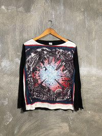 Jean Paul Gaultier Tokyo Paris Longsleeve Condition 9/10 Regular Fit Polyester material Size 42 No Flaws Chest: 55 cm Shoulder: 47 cm Length: 61 cm Sleeve Length: 55 cm Happy Shopping ✌🏼