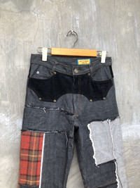 Item(s) : Betty’s Blue Shinji Abe Patchwork Denim Condition 9/10 Regular fit Non Stretch material Size 28 No Flaws Waist: 14 inch Front-rise: 11 inch Thigh: 10 inch Knee: 8 inch Openleg: 9 inch Outseam: 38 inch Inseam: 28 inch Happy Shopping 🙏🏼