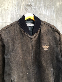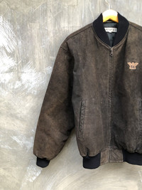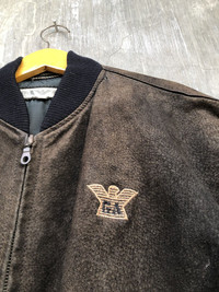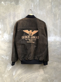 Item(s) : Vintage Giorgio Armani Leather Bomber Jacket Condition 8/10 Non stretch material Size L Beautiful fading Flaws: ripped on sleeve (check pict) Chest: 60 cm Shoulder: 50 cm Length: 65 cm Sleeve Length: 59 cm Happy Shopping ✌🏼