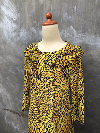 Juicy Couture Tiger Patern Midi Dress Condition 9/10 Size 4 Check Measurements) No flaws ❌ Chest: 45 cm Shoulder: 36 cm Length: 82 cm Sleeve Length: 43 cm Happy Shopping