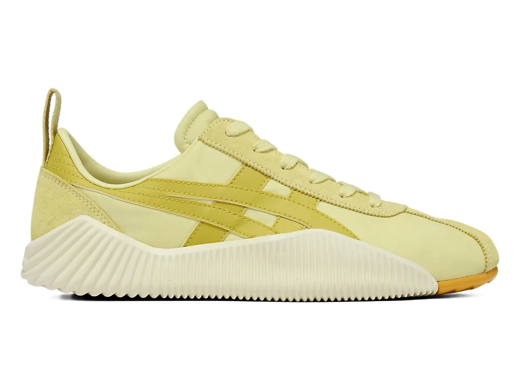 Inspired by the design of spiked track shoes from the 1970s, we introduce this new model in a leather and fabric combination with chic vintage touches. The slim silhouette of the toe is paired with a voluminous sole, similar to that of the 1970s track shoes. The sole has been updated to better suit a modern lifestyle; it is constructed with a combination of lightweight sponge and rubber. The oversized Onitsuka Tiger Stripes in contrasting colors accentuate the classic upper design. - Fabric and leather upper - fuzeGEL technology in heel for superior cushioning - OrthoLite X40 inner sole for bounce-like fit and soft ground impact DETAIL INFORMATION Brand : Onitsuka Tiger Country of Manufacture : Vietnam Part No : 1183B257 1183B257.750 (WHEAT YELLOW/MUSTARD) Outer Sole Material: RUBBER Upper material/surface: SYNTHETIC FIBER・LEATHER・SYNTHETIC LEATHER