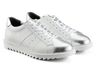 A court-type sneaker based on the design of tennis shoes originally released in 1973. While maintaining the classic elegance of leather shoes that THE ONITSUKA is known for, we have focused on further enhancing comfort. Special emphasis has been placed on improving flexibility and cushioning, resulting in a lighter and more comfortable fit. Flexibility has been improved through the materials used in the upper lining and insole. Additionally, the heel of the sole is equipped with Alpha Gel Foam, enhancing shock absorption. The insole design incorporates foam materials of varying firmness, maintaining cushioning while providing support to reduce arch collapse and heel instability. The outsole is made from rubber sponge, which combines durability and cushioning. The thick shark sole, based on the sole design used in past archive training shoes, features circular patterns on the forefoot and heel. -Made in Japan DETAIL INFORMATION - Brand: THE ONITSUKA - Country of Manufacture: Japan - Part No: 1183C412 - 1183C412.100 WHITE/SILVER - Upper material/surface: LEATHER - Outer Sole Material: RUBBER