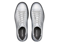 A court-type sneaker based on the design of tennis shoes originally released in 1973. While maintaining the classic elegance of leather shoes that THE ONITSUKA is known for, we have focused on further enhancing comfort. Special emphasis has been placed on improving flexibility and cushioning, resulting in a lighter and more comfortable fit. Flexibility has been improved through the materials used in the upper lining and insole. Additionally, the heel of the sole is equipped with Alpha Gel Foam, enhancing shock absorption. The insole design incorporates foam materials of varying firmness, maintaining cushioning while providing support to reduce arch collapse and heel instability. The outsole is made from rubber sponge, which combines durability and cushioning. The thick shark sole, based on the sole design used in past archive training shoes, features circular patterns on the forefoot and heel. -Made in Japan DETAIL INFORMATION - Brand: THE ONITSUKA - Country of Manufacture: Japan - Part No: 1183C360 - 1183C360.020 SILVER/SILVER - Upper material/surface: LEATHER - Outer Sole Material: RUBBER