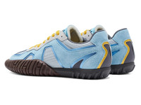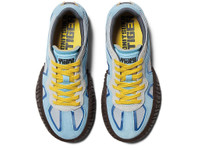 The "DUCK TIGER TRAINER" features an upper that follows the design of classic trainer shoes and a sole shape reminiscent of a duck's beak. The upper is layered with different materials, mesh and suede, to give the overall impression of modernity. DETAIL INFORMATION - Brand: ONITSUKA TIGER - Country of Manufacture: Vietnam - Part No: 1183C165 - 1183C165.400 ARCTIC SKY/TIGER YELLOW - Upper material/surface: LEATHER・SYNTHETIC FIBER・SYNTHETIC LEATHER - Outer Sole Material: RUBBER