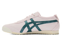 The "MEXICO 66™ SD" shoe, featuring a soft texture made from suede. ■Design Reimagined while inheriting the iconic elements of the "MEXICO 66™" shoe, such as the Onitsuka Tiger stripes, the thin sole style, and the cross parts on the heel. ■Material The upper is made of suede, achieving a soft feel and luxurious texture. ■Details ・Features AMPLIFOAM™ in the heel wedge for enhanced cushioning ・Utilizes a proprietary material in the outsole for superior grip ・Equipped with OrthoLite™ X-40 sockliner for excellent rebound and comfortable wear DETAIL INFORMATION - Brand: Onitsuka Tiger - Country of Manufacture: Vietnam - Part No: 1183C517 - 1183C517.700 CRYSTAL PINK/SPRUCE GREEN - Upper material/surface: LEATHER - Outer Sole Material: RUBBER