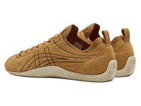 A shoe characterized by a design that resembles an integrated sock and shoe. ■A design imbued with the depth of autumn and winter, highlighted by distinct stitching Crafted from soft, high-quality cow suede, this shoe features a subdued color palette that is suitable for the fall and winter seasons. Design details, such as the Onitsuka Tiger stripes, are expressed through stitching, creating an elegant impression. ■Impressive style created by a unique sole The sole, designed to evoke the scratches of a tiger, is inspired by driving shoes and wrestling shoes from the 1970s. ・Come with spare shoelaces ・Equipped with shock-absorbing material in the midsole heel ・Features a sockliner that offers excellent rebound and supports a comfortable fit DETAIL INFORMATION - Brand: Onitsuka Tiger - Country of Manufacture: Vietnam - Part No: 1183C489 - 1183C489.200 TAN PRESIDIO/BLACK COFFEE - Upper material/surface: LEATHER・SYNTHETIC FIBER - Outer Sole Material: RUBBER