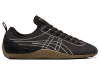 A shoe with a unique design integrating shoes and socks. Knit fabric envelops your feet, topped off by panels of high quality suede and matte-textured material. The sole, inspired by wrestling shoes from the 1970s, is designed to resemble tiger scratches. - Knit upper - Suede and matte-textured material panels - fuzeGEL technology in heel for superior cushioning - OrthoLite X-40 sockliner for bounce-like fit and soft ground impact DETAIL INFORMATION - Brand: Onitsuka Tiger - Country of Manufacture: Vietnam - Part No: 1183B969 - 1183B969.001 BLACK/WHITE - Upper material/surface: Faux leather×Leather×Natural fiber - Outer Sole Material: RUBBER