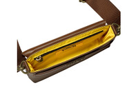 AW25 Collection A stylish small top flap bag with a big-size strap, crafted from high-quality cow leather ■Stylish design and functionality The brown body features a front strap adorned with an antique gold metal brand logo, creating a simple yet elegant impression. The lining is in the brand's signature Tiger Yellow, providing an attractive contrast. The removable shoulder strap allows for versatile styling as a handbag. Perfectly sized for casual outings, this bag exudes a refined style. ・Made from high-quality cowhide ・2-way design ・Interior includes a zippered pocket ■About AW25 Collection The theme of the 2025 Autumn/Winter Yellow Collection is "Urban Duality", inspired by the city of Tokyo where tradition and modernity collide. Size ( measurement : cm ) : W20×H12.5×D3.5 DETAIL INFORMATION - Brand: ONITSUKA TIGER - Country of Manufacture: Vietnam - Part No: 3183B231 - 3183B231.200 BROWN/GOLD - Quality: Shell Cow Leather Lining Polyester100%