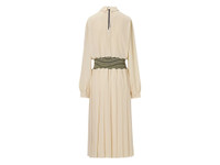 AW25 Collection An elegant long-sleeve dress featuring light feeling fabric and a unique waist silhouette ■A distinctive presence at the waist and an elegant flowing silhouette The dress, made from polyester with a beautiful drape, features a unique charm created by inserting a thick knit of a contrasting material at the waist. Designed shoulder pads maintain an elegant line, while abundant pleats create graceful movement. A striped cord adorns the back zipper, adding a personalized accent that reflects attention to detail. ・Includes shoulder pads ・Made in Japan ■About AW25 Collection The theme of the 2025 Autumn/Winter Yellow Collection is "Urban Duality", inspired by the city of Tokyo where tradition and modernity collide. 【Size ( measurement : cm )】 S ) Body length: 113 Shoulder to Shoulder: 37 Chest: 46 Sleeve Length: 60.75 M ) Body length: 116 Shoulder to Shoulder: 38.5 Chest: 48 Sleeve Length: 62.75 L ) Body length: 119 Shoulder to Shoulder: 40 Chest: 50 Sleeve Length: 64.75 DETAIL INFORMATION - Brand: ONITSUKA TIGER - Country of Manufacture: Japan - Part No: 2182B517 - 2182B517.750 IVORY - Quality: Main fabric Polyester100% Insert Cotton100%