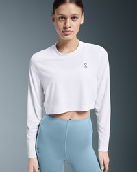 The long-sleeved, cropped tee for high-intensity training sessions. Super soft, sweat wicking and designed to move. Materials & Transparency Key features - Weight: Noneg - Comfortable rib neckline - Decorative stitching for a premium look - Heat-transferred brand logo on chest - Soft-touch cropped performance tee - Made with recycled polyester - Angled shoulder seam - Made with ultra-breathable, sweat-wicking On DryTec™ fabric - Embroidered bar tack detailing