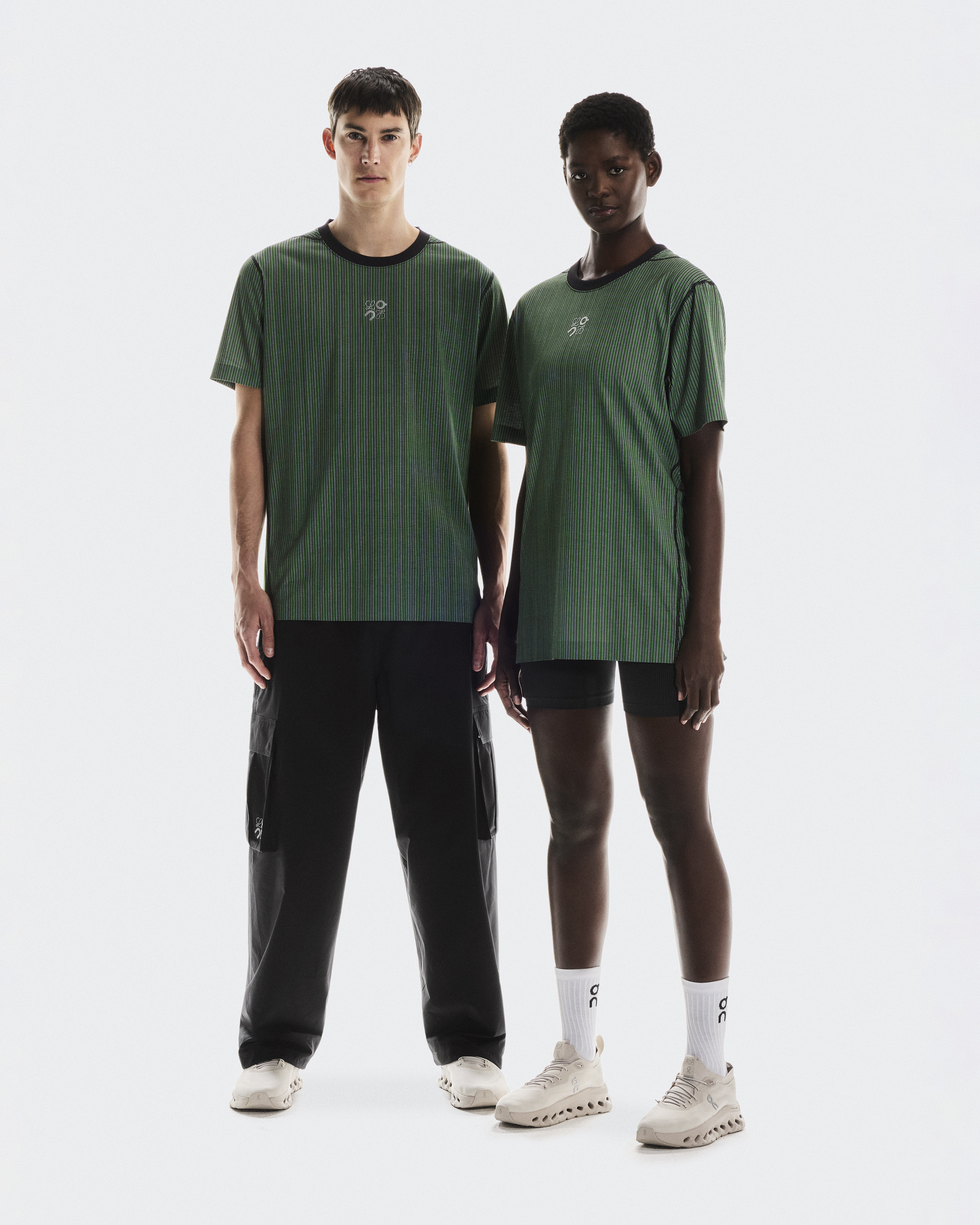 This is no ordinary T-shirt. Designed with LOEWE, technical jersey elevates a wardrobe classic to a workout icon. Materials & Transparency Materials Main Fabric: Polyester (recycled) 100%. Rib: Polyester (recycled) 95%, Elastane 5%. Key features - Weight: /en-us/products/active-t-shirt-loewe-u-1uf1061/unisex/beige-blue-apparel-1UF10614535g - Designed by LOEWE × On - Printed striped fabric - Super-soft breathable jersey - Moisture-wicking fabric - Reflective LOEWE × On logo