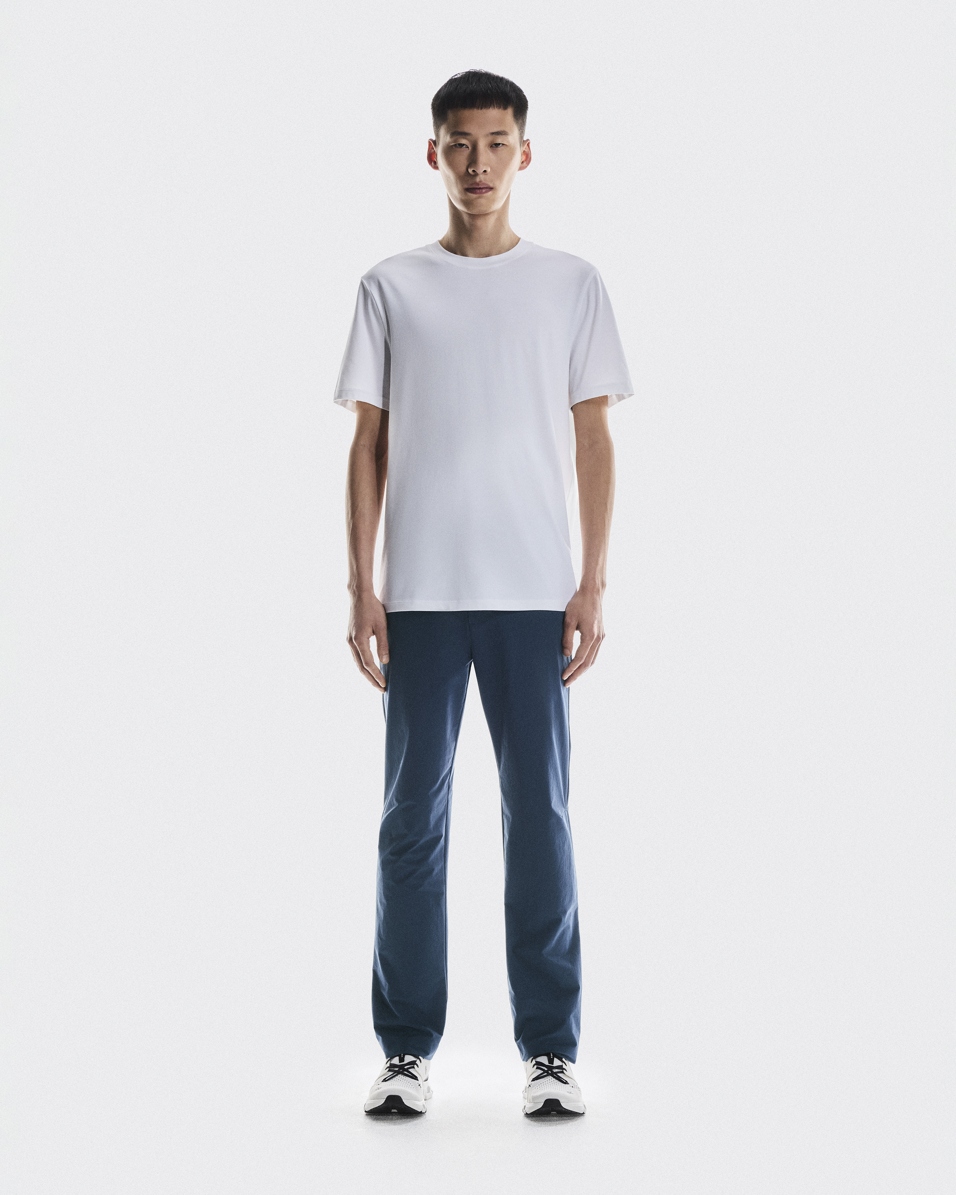 Chilled-out days call for exceptional essentials. Elevate your downtime with these minimalist pants with functional details. Materials & Transparency Materials Main fabric: 57% recycled polyamide, 38% polyamide, 5% elastane Key features - Weight: Noneg - Adapts to your movements - Hidden back pockets - Regular fit - sits comfortably on your body - Additional hidden zip pocket on your right side - Bonded hems for a clean finish - Adjustable waistband and belt – for your perfect fit - Slanted side pockets
