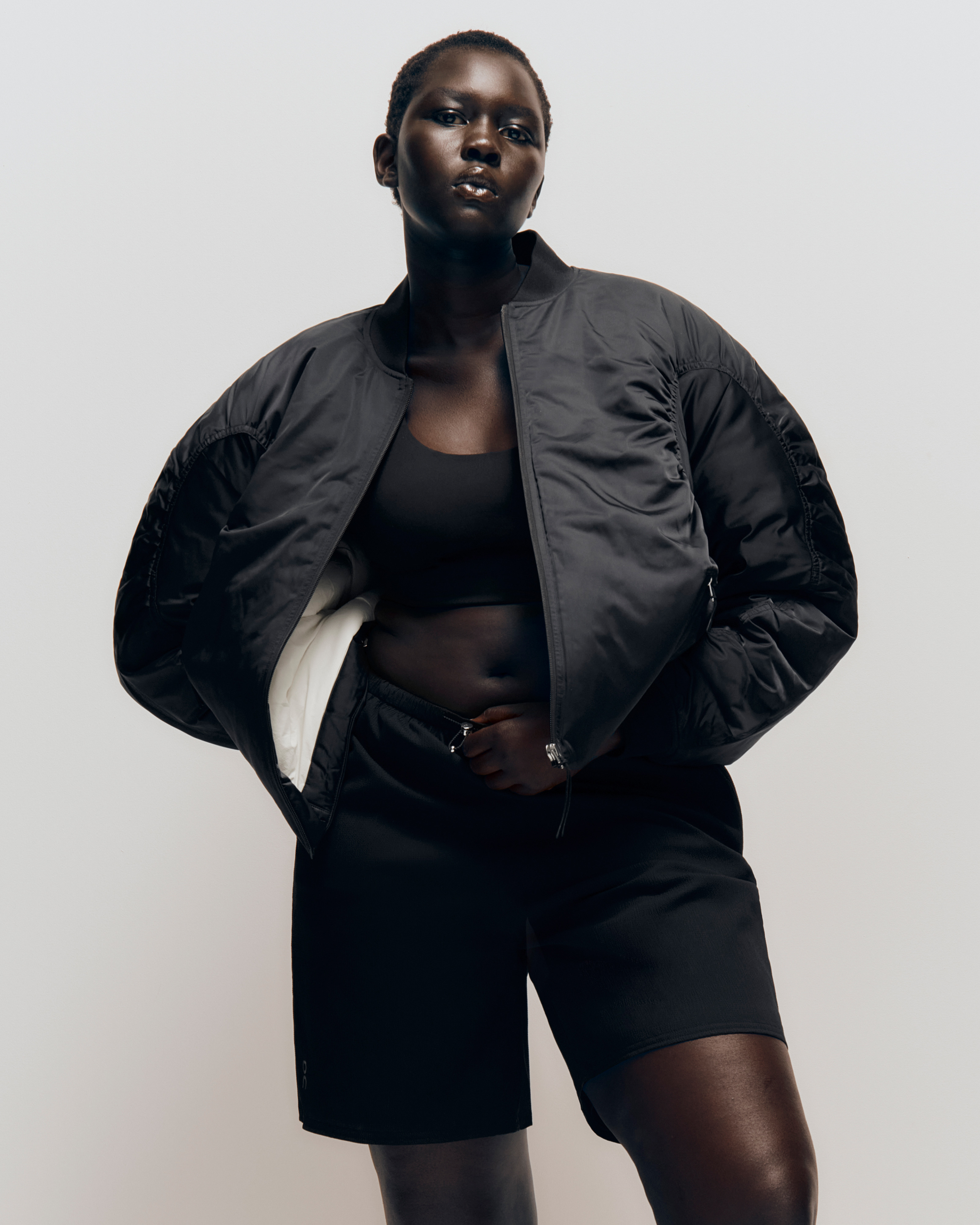 A bomber jacket with a subtle sheen across the fabric. Designed in a regular fit, with an adjustable hem and pockets. Materials & Transparency Materials Padding: Polyester (recycled) 100%. Rib: Polyester (recycled) 98%, Elastane 2%. Key features - Weight: Noneg - Rib collar and cuffs - Bungee cord adjustable hem - Side pockets - Underarm gussets