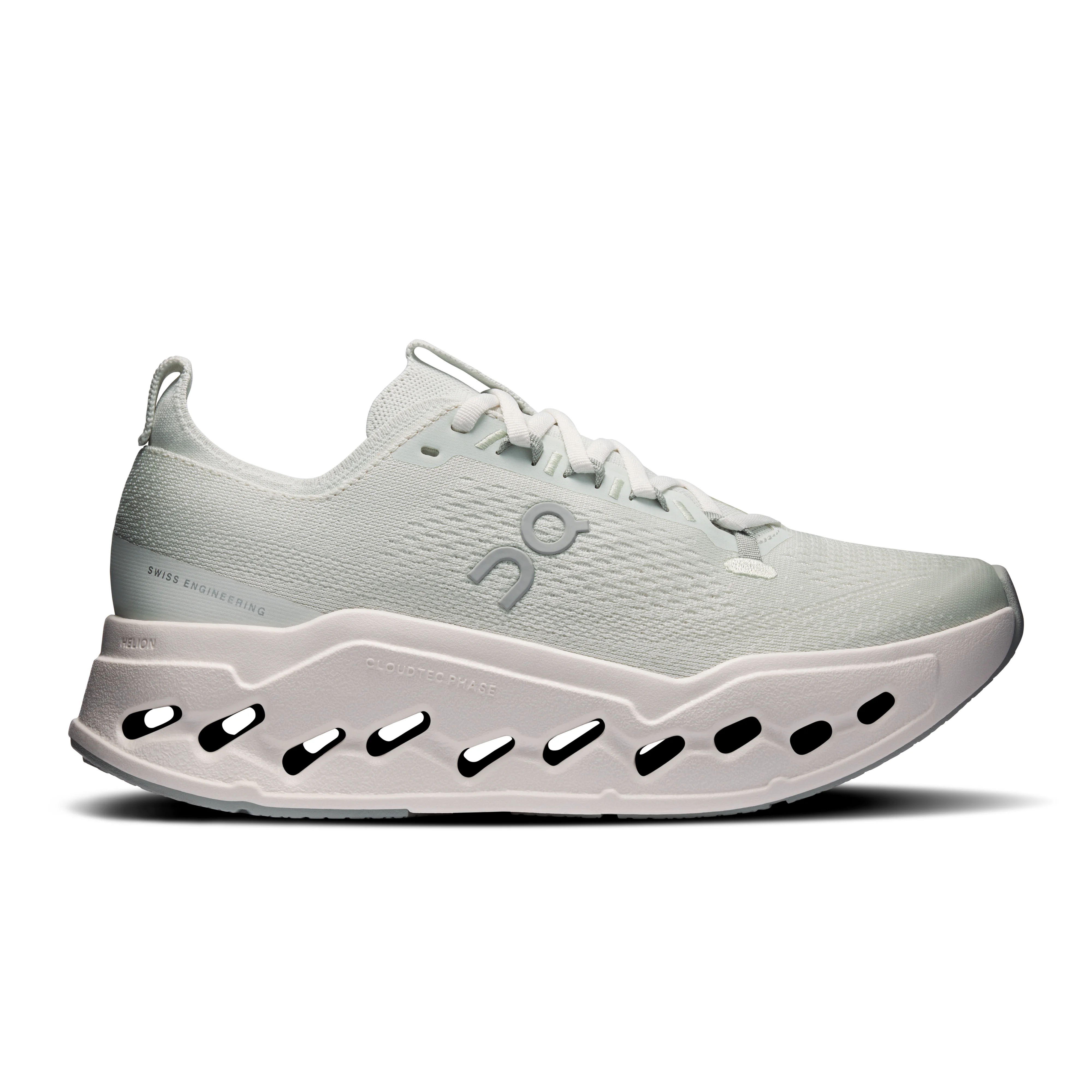 The maximum cushioned shoe for long, effortless runs. Double CloudTec Phase™ delivers a comfortable, smooth sensation. Materials & Transparency Materials Upper Unit: Recycled polyester / Bottom Unit: Outsole: Rubber / Speedboard: None / Technology: CloudTec Phase ® Key features - Weight: /en-us/products/cloudsurfer-max-w-3wf3022/womens/ivory-salmon-shoes-3WF30223297g - Double layer of CloudTec Phase™ for a soft and smooth ride - Helion™ superfoam for maximum cushioning - Impact-absorbing midsole adds to effortless feel - Knitted tongue for comfort and lock-in - Rubber pads on the outsole for grip - Lightweight and breathable mesh upper - Next-generation eyestays for comfort - Best for long-distance runs