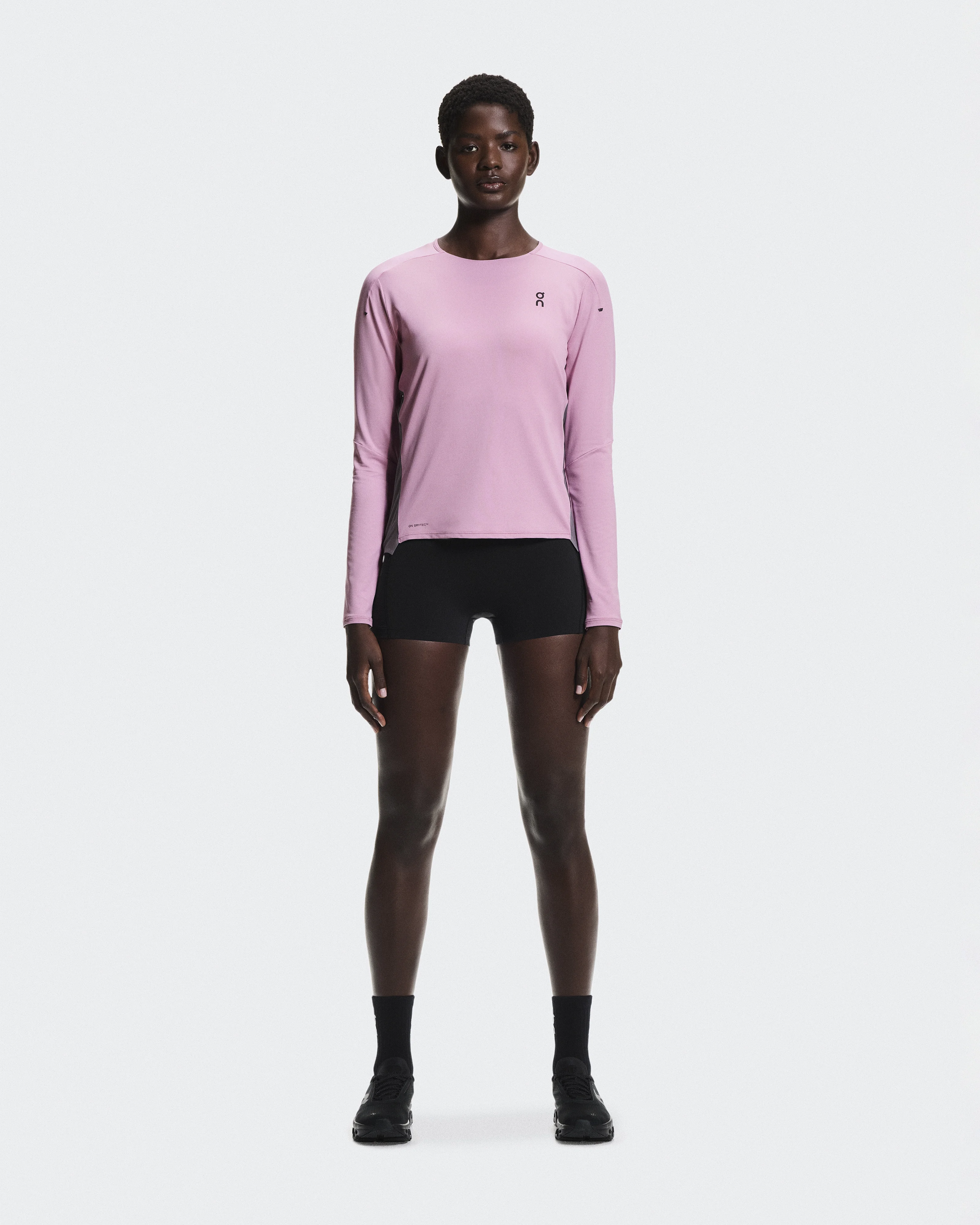 Movement, elevated. With On DryTec™ breathable, moisture-wicking, quick-drying fabric. Materials & Transparency Materials Front: Polyester (recycled) 90%, Elastane 10%. Back: Polyester (recycled) 77%, Elastane 23%. Key features - Weight: /en-us/products/performance-long-t-w-1we1032/womens/black-eclipse-apparel-1WE10320106g - On DryTec™ breathable, moisture-wicking, quick-drying fabric - Lightweight material - Reflective elements - Smooth bonded hems - Unnoticeable seams - No distraction or skin irritation - Shaped sleeves, forwarded side seam, flatlock back seam