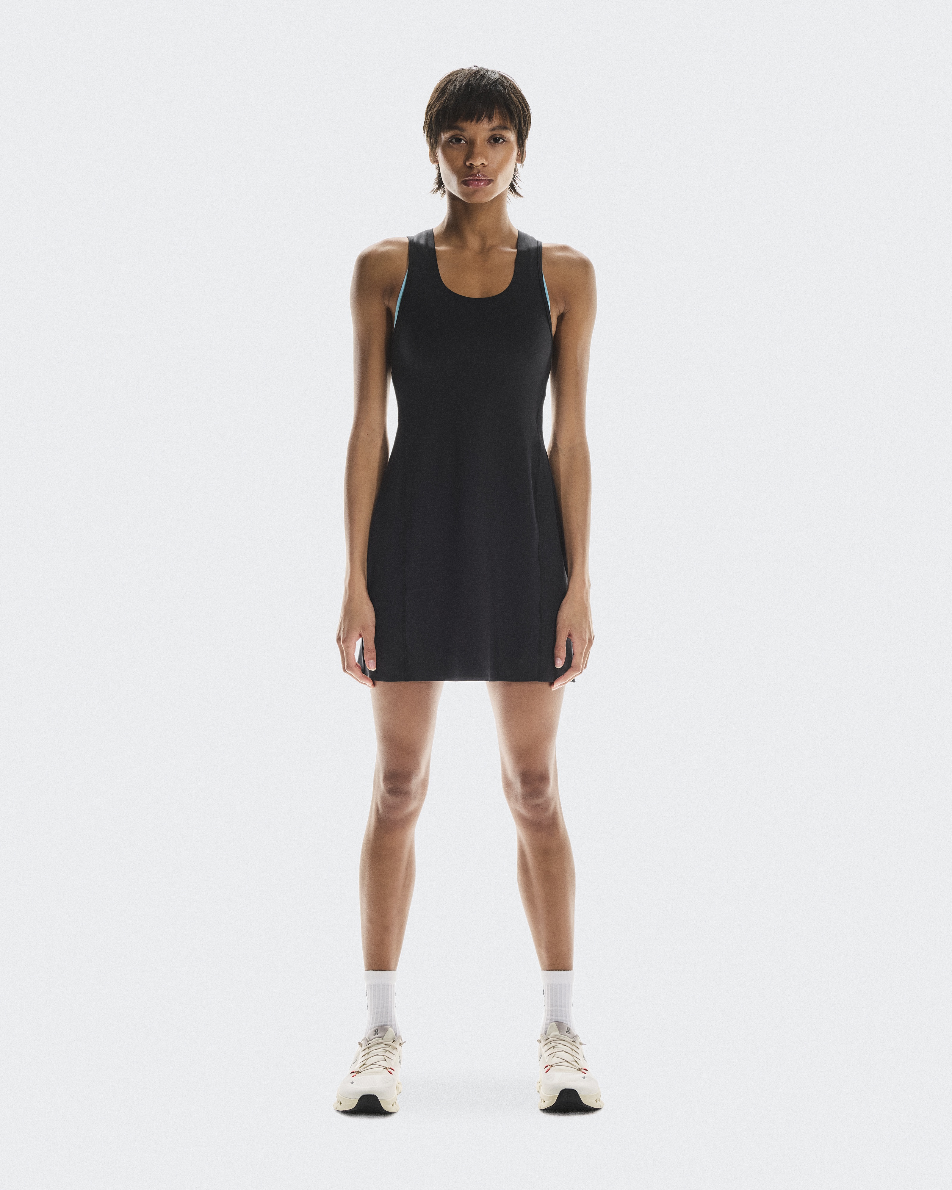 Switch up your studio fit with this soft, sporty dress. With a cut-out back, secure built-in tights, and a side pocket. Materials & Transparency Materials Main Fabric: Polyester (recycled) 71%, Elastane 29%. Inner brief: Polyester (recycled) 88%, Elastane 12%. Key features - Weight: Noneg - Soft to the touch fabric - Side pocket added to built-in tights - Open-back design for added airflow - Front double layer for extra coverage - Built-in, secure inner tights - Premium bonded seams reduce chafing - Finished with On branding and Swiss Engineering print - Pairs with your favorite sports bra