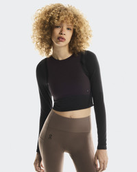 Elevate your practice. This long-sleeve crop top is a seamless blend of performance fabric and form-fitting silhouette. Materials & Transparency Materials Main Fabric: Polyamide (recycled) 54%, Polyester (recycled) 29%, Elastane 17%. Key features - Weight: Noneg - Sculpted, form-fitting silhouette - Pairs perfectly with the Studio Knit Tights - Bonded armholes and neckline for zero chafing - On-trend style from sports to street - Lightweight, stretchy fabric for lasting comfort - Neutral, two-tone yarn finish - Circular knitting technique ensures a seamless fit - Versatile for low-impact workouts, yoga, and all-day wear
